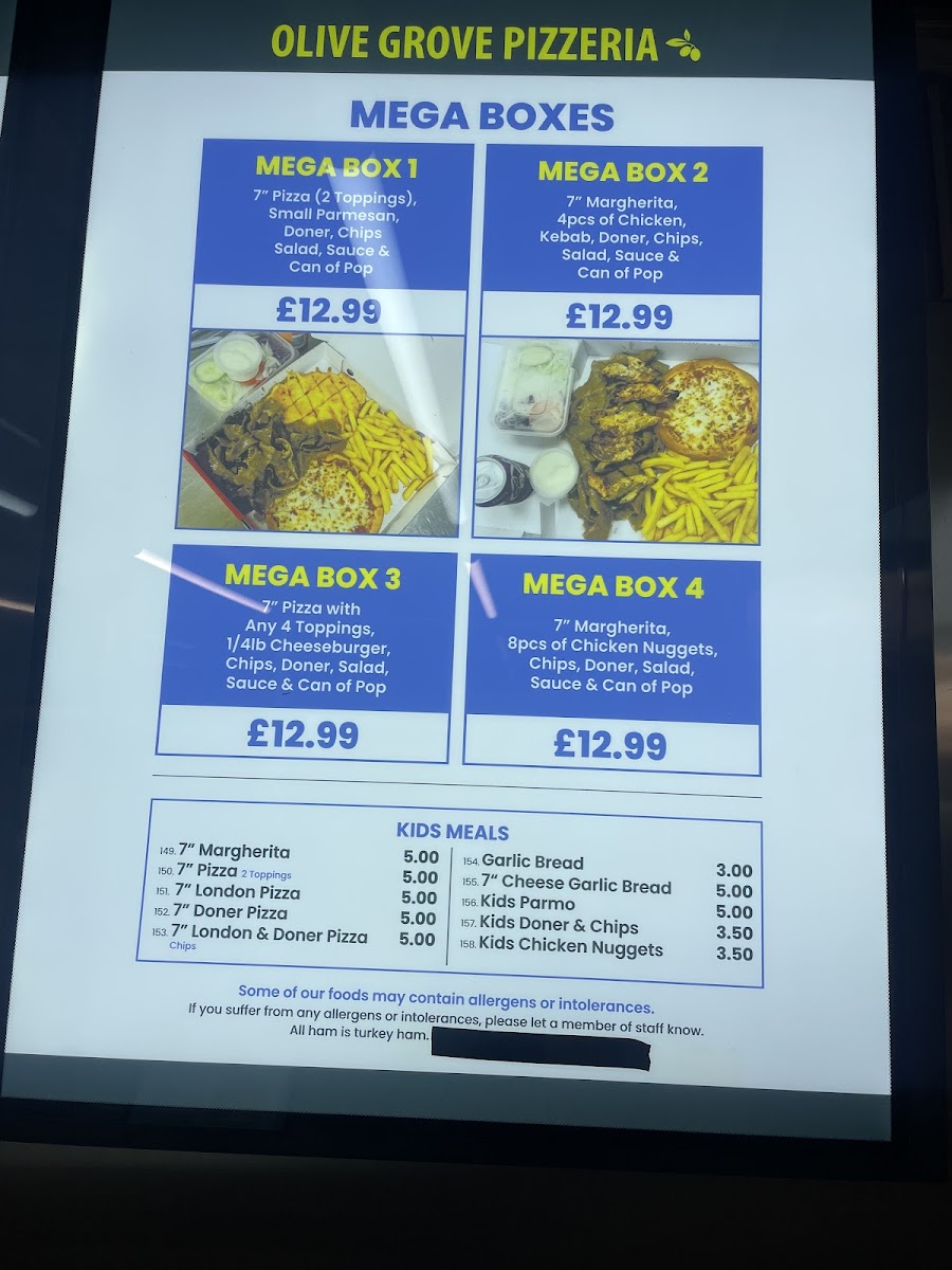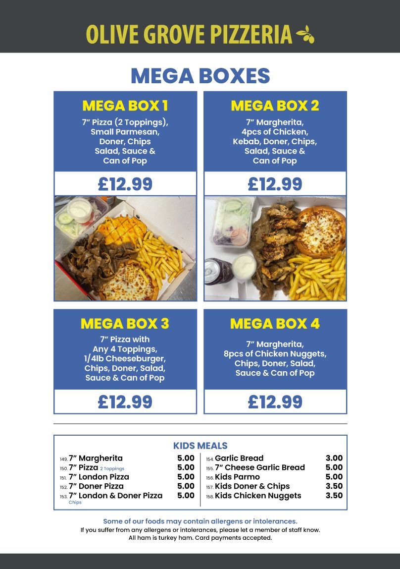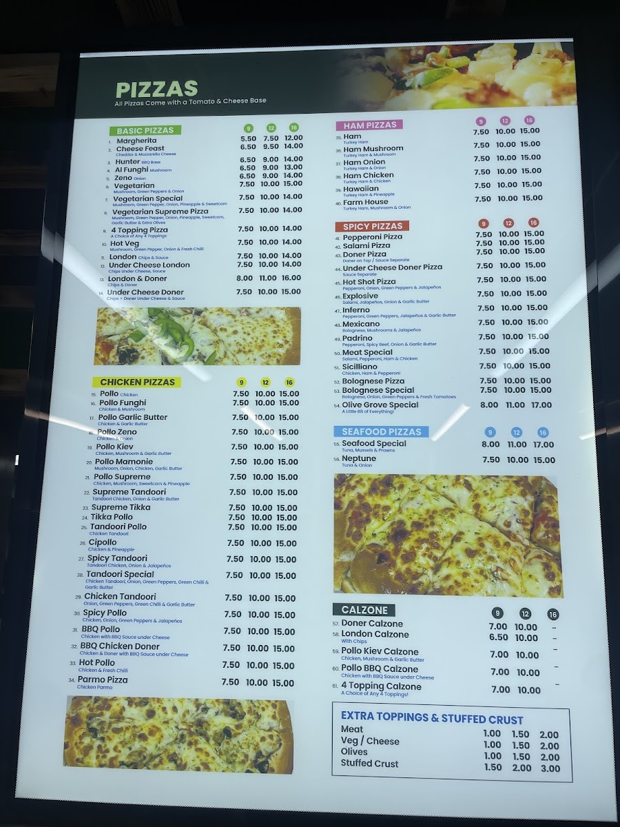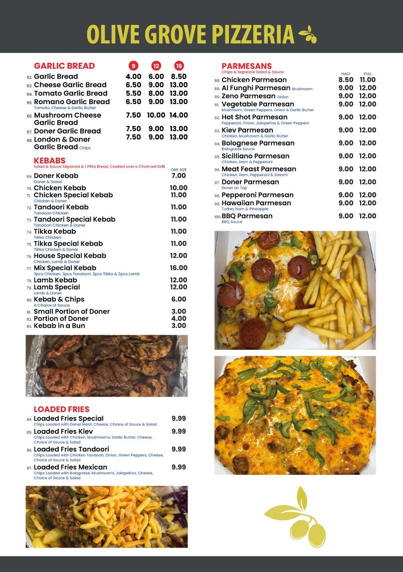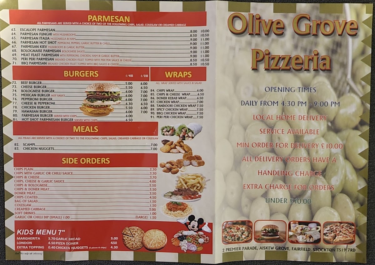 Welcome to Olive Grove Pizzeria, a gem nestled in Stockton-on-Tees, where flavor meets family-friendly dining. This delightful pizza takeaway specializes in satisfying the cravings of both young and old with a diverse menu that celebrates authentic Italian flavors. The standout is undoubtedly the kids' menu, featuring 7" pizzas like the classic Margherita and unique options like the London and Doner pizzas, all at just £5.00.